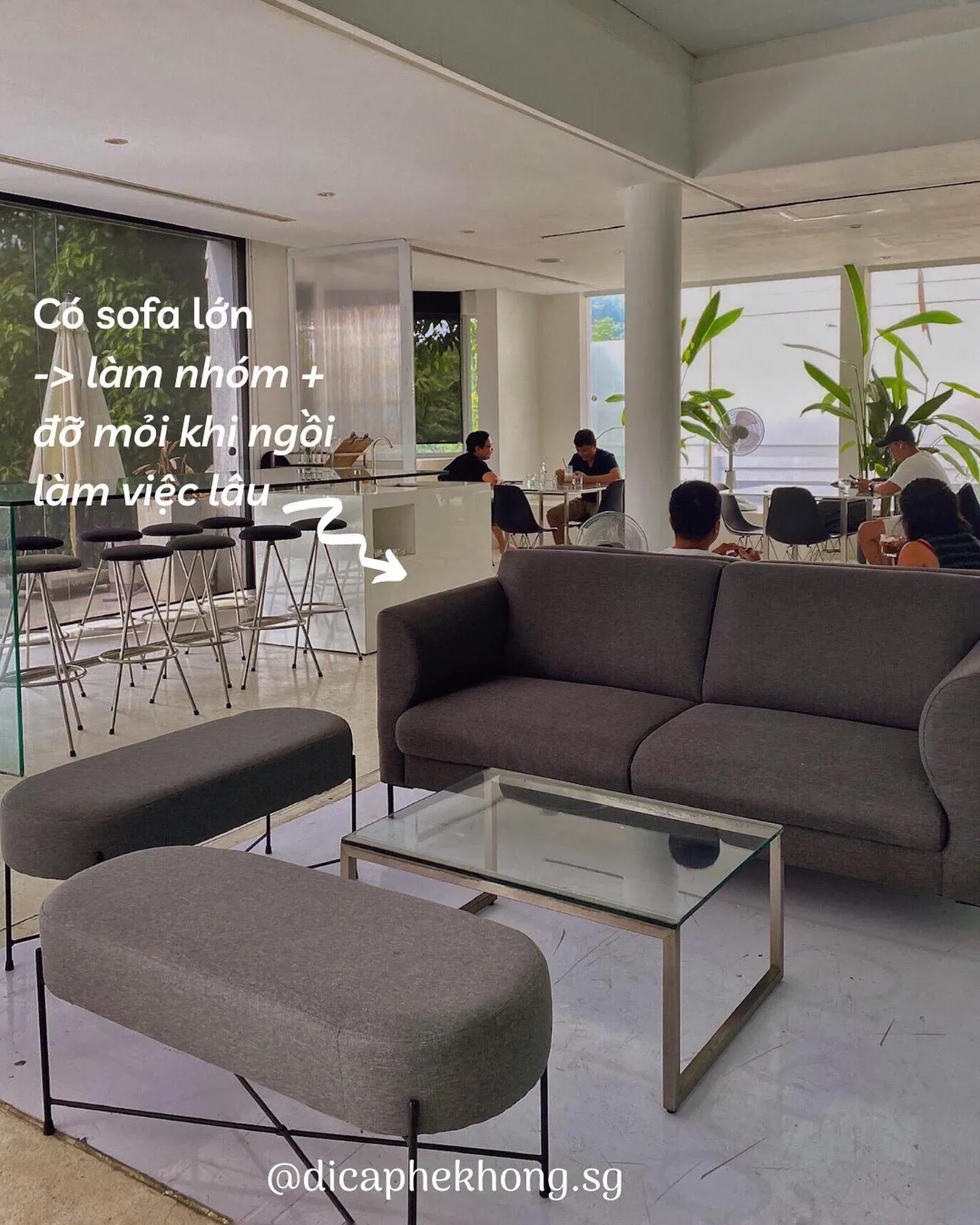 Không gian rộng lớn, yên tĩnh, đón nhiều ánh nắng, phù hợp cho đi cà phê công việc