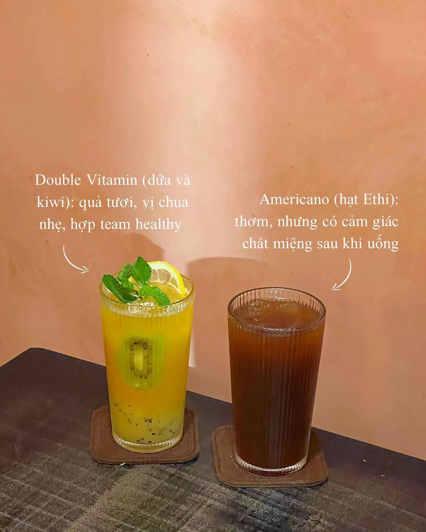 Ấn tượng nhất với mấy món đồ uống healthy của quán. Mình thử Double Vitamin (có dứa &kiwi): nguyên liệu tươi, chua nhẹ, hợp team đang trong chế độ detox